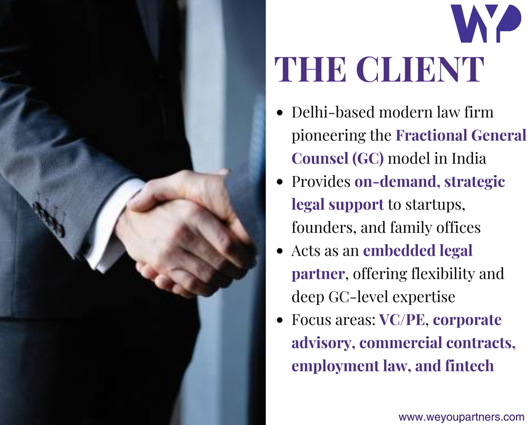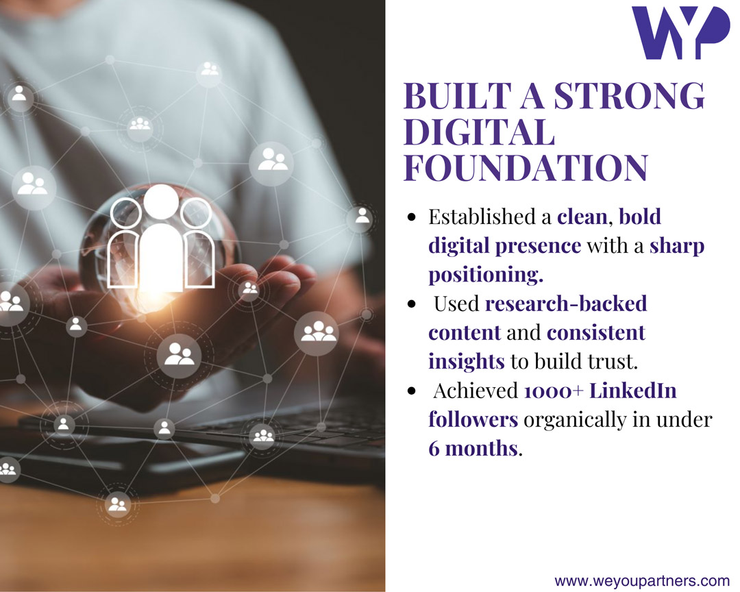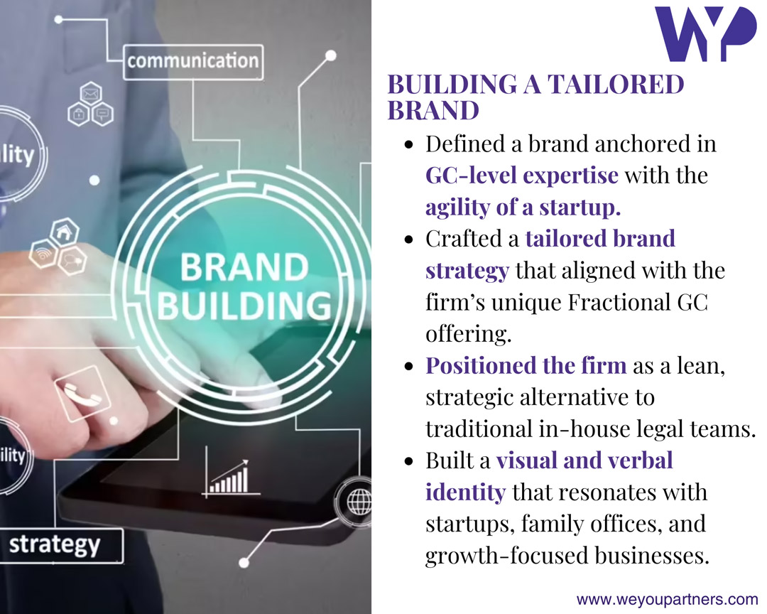 WeYou Partners partnered with a newly launched Indian law firm to reshape the way legal support is delivered to high-growth founders and family offices. By sharpening brand identity, refining founder-first messaging, and amplifying digital presence and thought leadership, we positioned them at the forefront of the evolving Fractional General Counsel space, where legal depth meets entrepreneurial speed.